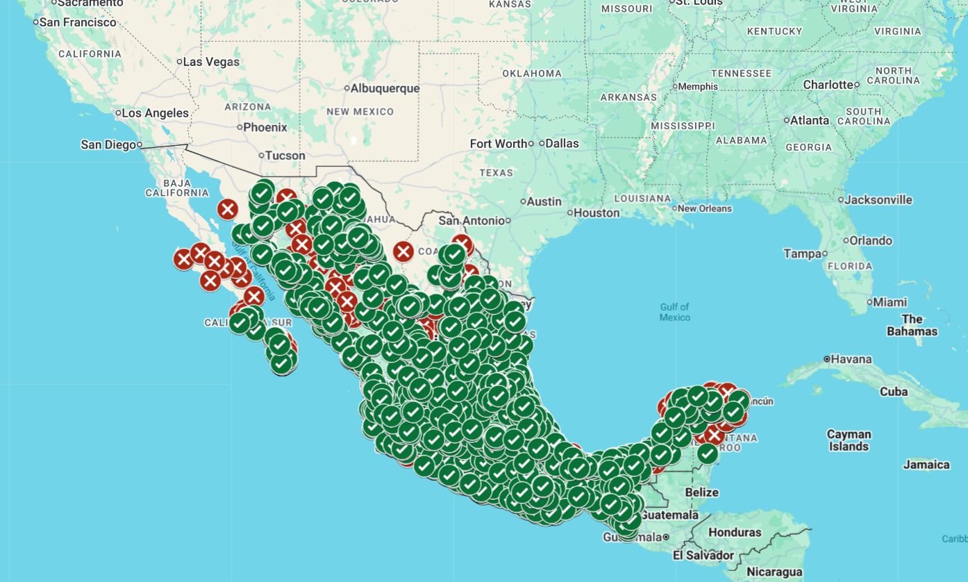 Las estaciones marcadas con una “palomita” indican que ofrecen precios considerados justos para los consumidores, mientras que aquellas señaladas con una “tache” reflejan costos más elevados, lo que permite a los usuarios comparar y decidir dónde cargar gasolina.