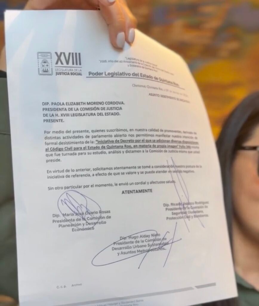 CHETUMAL, Q. Roo, a 10 de marzo de 2026.– La polémica iniciativa de “Propia Imagen”, que había generado un fuerte rechazo en el gremio periodístico por considerarse una amenaza a la libertad de expresión, fue retirada oficialmente este lunes de la agenda legislativa de Quintana Roo.