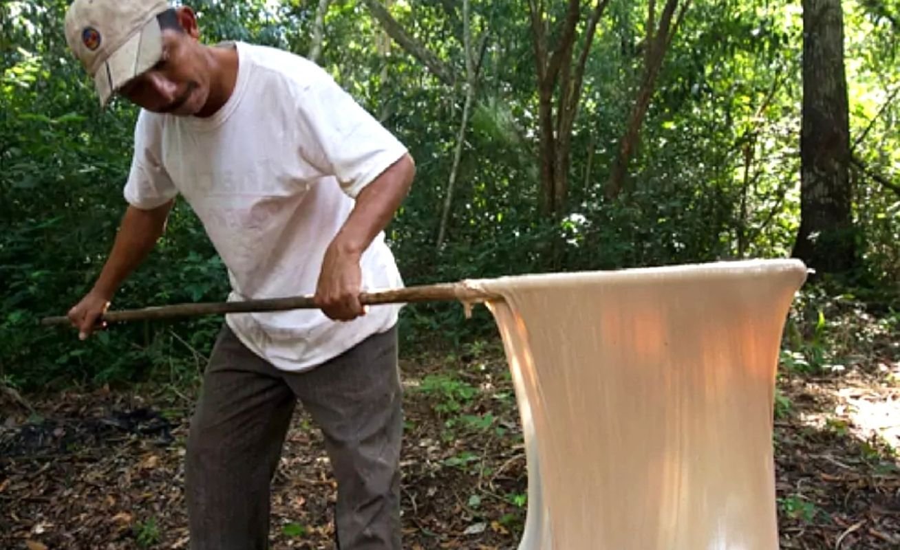 El proceso, aprendido de generaciones anteriores, consiste en realizar incisiones en zigzag en la corteza para recolectar la resina, la cual se cocina a fuego lento hasta obtener una masa elástica que sirve de base para la goma de mascar.